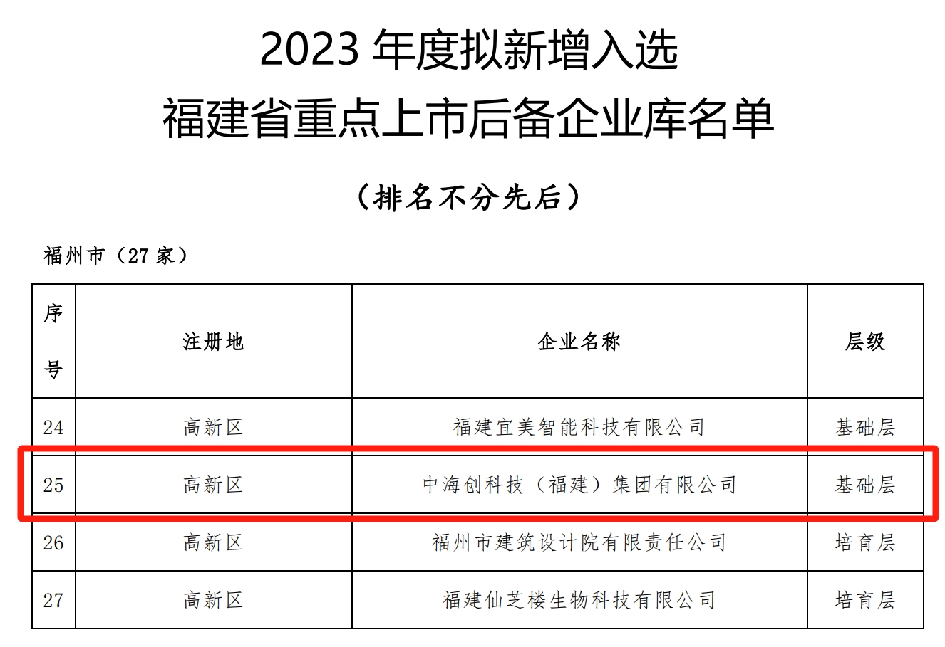 近日,福建省地方金融监督管理局公布“2023年度拟新增入选福建省重点上市后备企业库名单”,中新利集团官网(中国)官方网站集团成功入选省重点上市后备企业梯队。